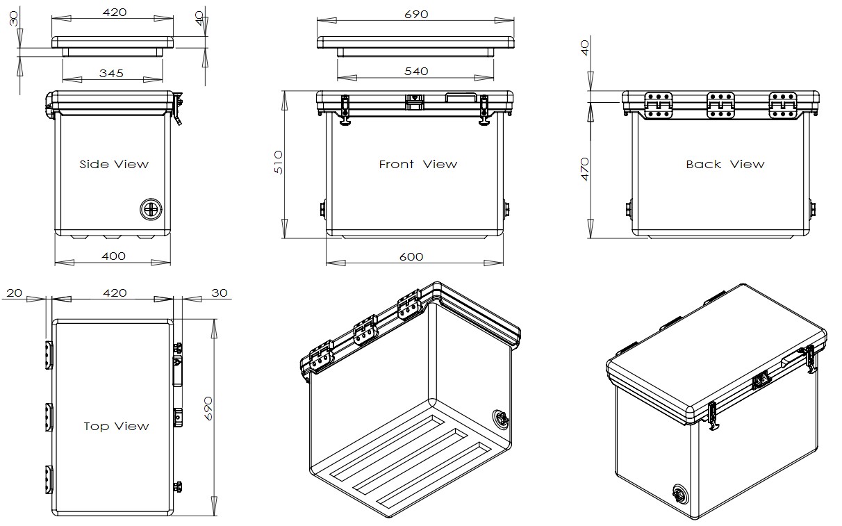 The wall thickness ranges from 80mm thick in the lid where it needs the most insulation. To 40mm to 45mm thick in the base and sides. This gives our coolers great thermal insulation without being overly heavy.